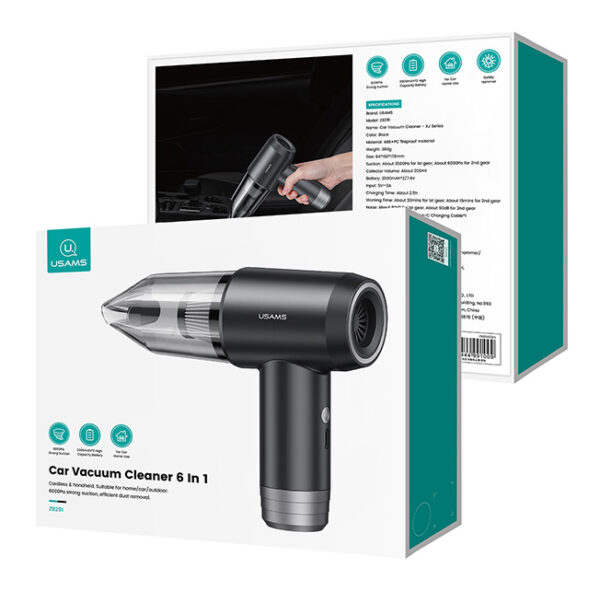 USAMS 2 σε 1 σκουπάκι χειρός & air duster ZB291, 60W, 4000mAh, μαύρο