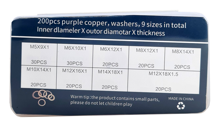 Σετ χάλκινες ροδέλες DA15, διάφορα μεγέθη, 200τμχ