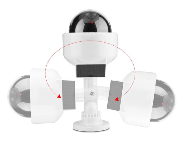 Η τροφοδοσία της ψεύτικης κάμερας γίνεται με την ηλιακή ενέργεια μέσω του ηλιακού πάνελ ή με 2x AA μπαταρίες (δεν συμπεριλαμβάνονται).