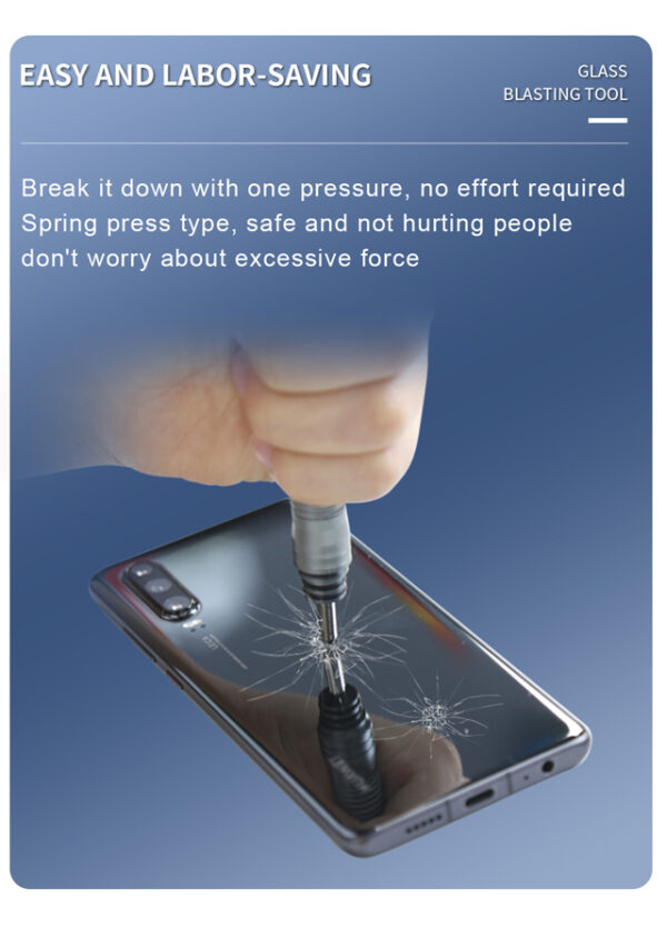 Το εργαλείο θραύσης τζαμιών της BEST είναι το κατάλληλο εργαλείο για την επισκευή κινητών τηλεφώνων. Το πίσω μέρος του μπορεί να περιστραφεί για να ρυθμίσει την δύναμη του χτυπήματος έτσι ώστε να μην βλάψει τα αξεσουάρ στο πίσω μέρος του γυάλινου καλύμματος του κινητού. Διαθέτει μοντέρνα και πρωτότυπη εμφάνιση ενώ το μικρό μέγεθος του το κάνει εύκολο στην μεταφορά.