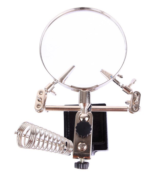 Μεγεθυντικός φακός με κλιπ συγκράτησης για επισκευή ηλεκτρονικών μερών.