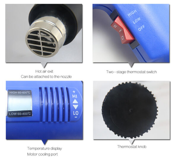 Πιστόλι θερμού αέρα με ρυθμιζόμενη θερμοκρασία 350°C – 600°C και οθόνη LCD.