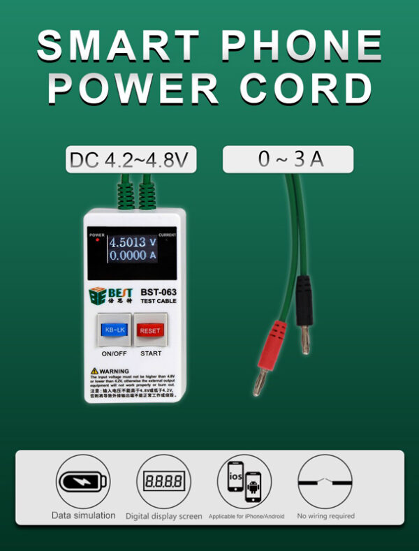 Repair tool της Best για τον έλεγχο αμπέρ και voltage σε iPhone & Android smartphones. Στην συσκευασία συμπεριλαμβάνονται flex cables για την σύνδεση με τα περισσότερα μοντέλα Android και iPhone.