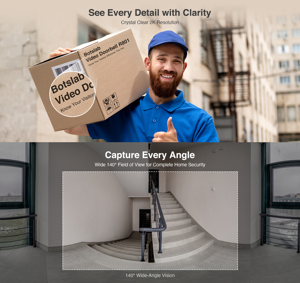 Smart κουδούνι της Botslab με ενσωματωμένη κάμερα που μεταφέρει εικόνα υψηλής ανάλυσης 2K.