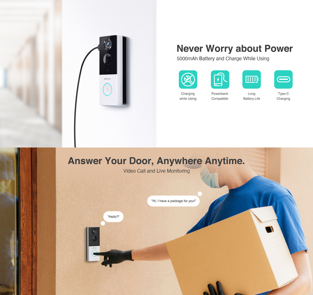 BOTSLAB smart κουδούνι με κάμερα R801, 3MP/2K, WiFi, 5000mAh