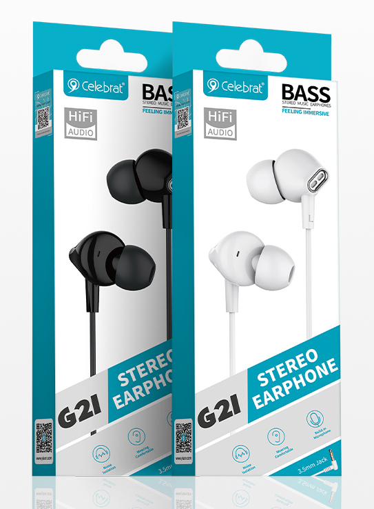 CELEBRAT earphones με μικρόφωνο G21, 3.5mm σύνδεση, Φ12mm, 1.2m, λευκά