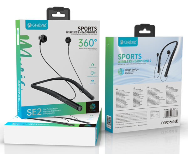 CELEBRAT earphones SE2 με μαγνήτη, Bluetooth, 14mm, 280mAh, μαύρα