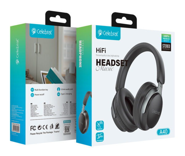CELEBRAT headphones A40, ασύρματα & ενσύρματα, 40mm, 250mAh, μαύρα