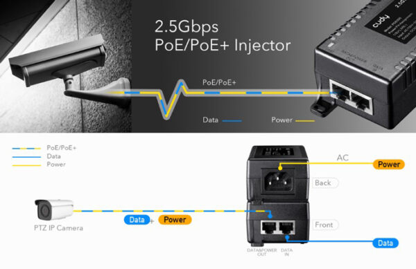 2.5Gbps PoE+/PoE injector από την Cudy, πλήρως συμβατό με συσκευές PoE, όπως κάμερες IP, access points και τηλέφωνα IP.
