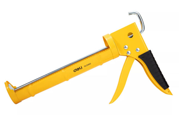Πιστόλι σιλικόνης Deli ανοικτού τύπου, ιδανικό για φυσίγγια σιλικόνης μήκους έως 230mm. Είναι κατασκευασμένο από ατσάλι υψηλής ποιότητας και διαθέτει εργονομική λαβή.
