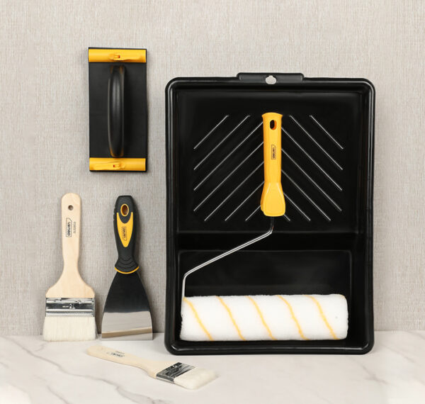 Σετ βαφής 6 σε 1 της Deli το οποίο αποτελείται από ρολό βαφής με λαβή, 2x πινέλα βαφής, σπάτουλα, γυαλοχαρτιέρα χειρός και σκάφη.