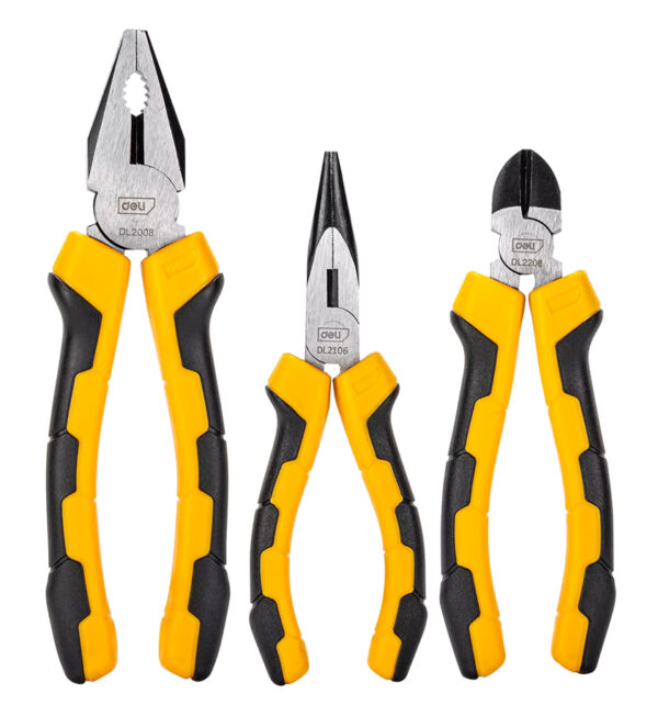 Σετ εργαλείων από την Deli που αποτελείται από μια πένσα, ένα μυτοτσίμπιδο και ένα πλαγιοκόφτη.