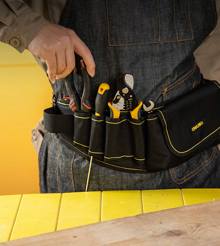 Εργαλειοθήκη μέσης πολλαπλών θέσεων της Deli, ιδανική για την αποθήκευση διαφόρων εργαλείων χειρός.