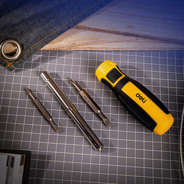Κατσαβίδι της Deli με ανταλλάξιμες μύτες, ιδανικό για ποικιλία εργασιών σε επαγγελματικό ή οικιακό περιβάλλον.