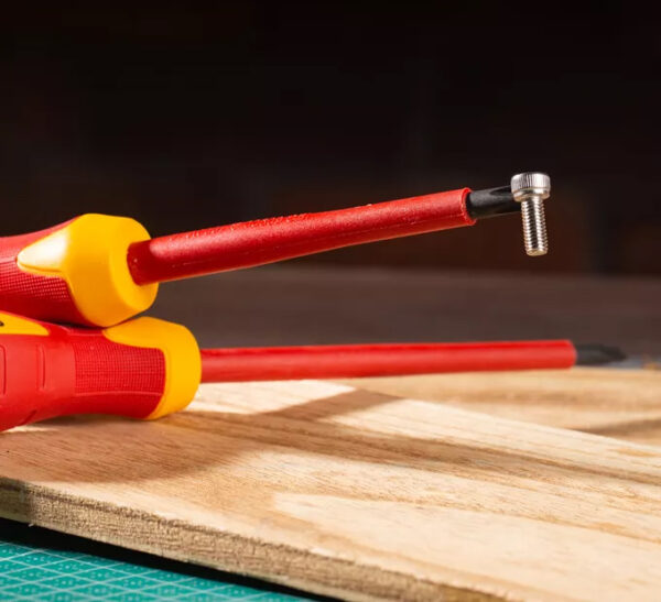 Σετ κατσαβιδιών ηλεκτρολόγου της Deli που αποτελείται από 2 ίσια κατσαβίδια, 2 σταυρωτά και 1 δοκιμαστικό κατσαβίδι.