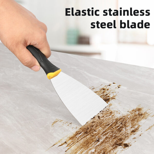 Σπάτουλα της DELI με ανθεκτική λάμα από ανοξείδωτο ατσάλι και άνετη αντιολισθητική λαβή. Είναι ιδανική για εργασίες στόκου, σοβά, αφαίρεσης βαφής και άλλες εφαρμογές.