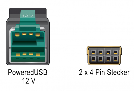 Αυτό το καλώδιο PoweredUSB της Delock μπορεί να χρησιμοποιηθεί για τη σύνδεση μιας συσκευής με θύρα των 2x 4pin σε έναν υπολογιστή ή hub μέσω της θύρας PoweredUSB 12V. Είναι κατάλληλο για τη σύνδεση συσκευών POS όπως εκτυπωτές και τερματικά.