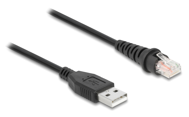 Καλώδιο USB σε RJ50 από την Delock, κατάλληλο για την σύνδεση ενός barcode scanner με υποδοχή RJ50 σε έναν υπολογιστή.