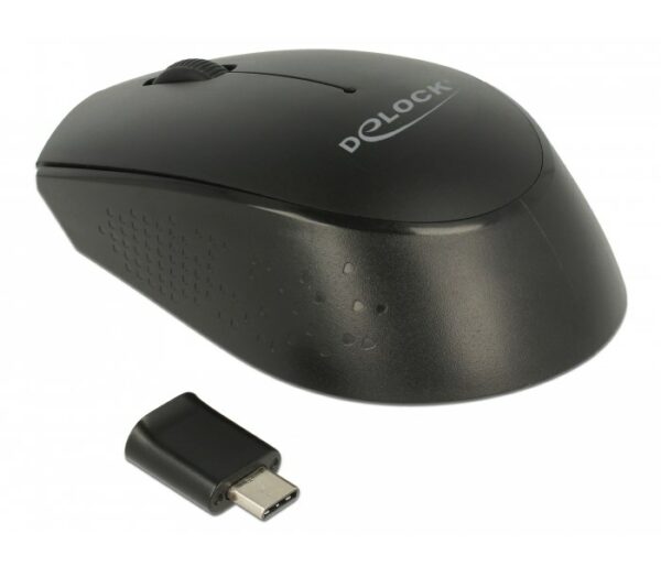 DELOCK ασύρματο ποντίκι 12526, Οπτικό, USB-C receiver, 3-button, μαύρο