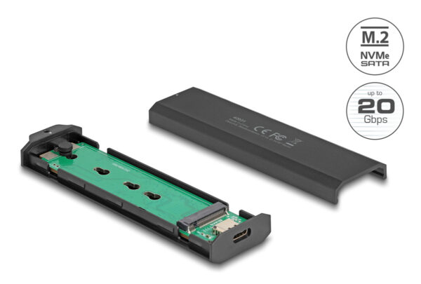 DELOCK θήκη για M.2 NVMe PCIe/SATA SSD 42031, 20Gbps, tool free, μαύρη
