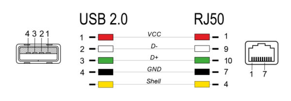 Αυτό το καλώδιο της Delock μπορεί να χρησιμοποιηθεί για τη σύνδεση ενός barcode scanner με υποδοχή RJ50 με ένα laptop ή desktop με υποδοχή USB.
