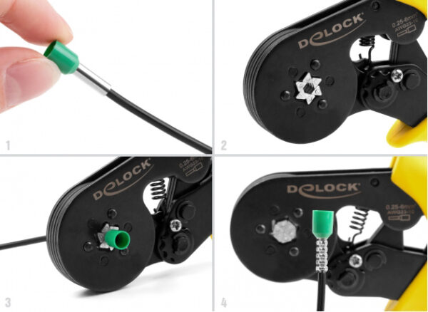 DELOCK πρέσα ακροδεκτών 90561, αυτορυθμιζόμενη, εξάγωνο, 10-23 AWG