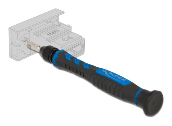 Πρακτικό σετ από την Delock που περιλαμβάνει ένα κατσαβίδι και 7 διαφορετικές εξάγωνες bit κεφάλες. Το κατσαβίδι διαθέτει σπείρωμα με κλείδωμα, παρόμοιο με τρυπάνι, το οποίο κρατά τις κεφαλές με ασφάλεια ενώ η αντιολισθητική λαβή του το καθίστα εξαιρετικά σταθερό κατά την εργασία.