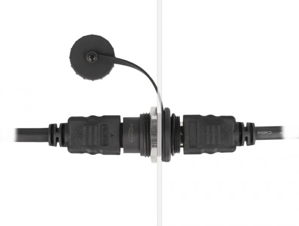 Αυτό το module μπορεί να χρησιμοποιηθεί σε ένα D-Type patch panel της Delock για να συνδέσει μαζί 2 υποδοχές HDMI. Η θύρα διαθέτει προστατευτικό καπάκι με στεγανοποίηση IP67 για προστασία από νερό και σκόνη.