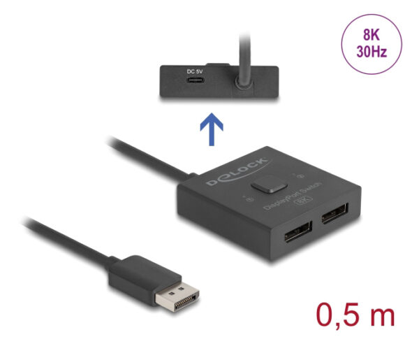 DELOCK DisplayPort switch 18906, 2 σε 1, bidirectional, 8K/30Hz, μαύρο