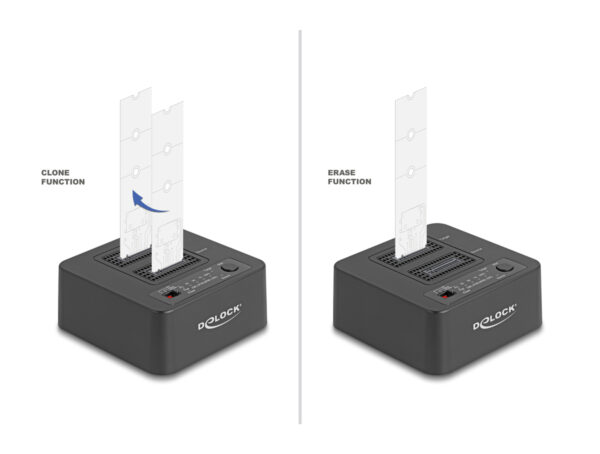 DELOCK docking station για M.2 NVMe SSD 64300, 2 θέσεων, 20Gbps, clone/erase function, μαύρο