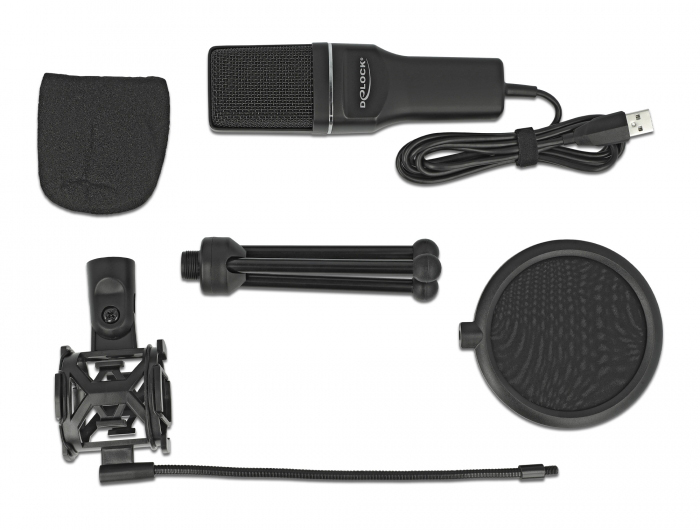 DELOCK Mικρόφωνο studio με pop φίλτρο & αντιανέμιο 66331, πυκνωτικό, USB