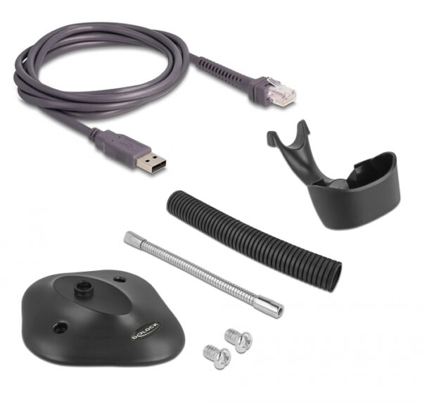 DELOCK USB barcode scanner 1D 90584, με καλώδιο σύνδεσης & βάση, μαύρο