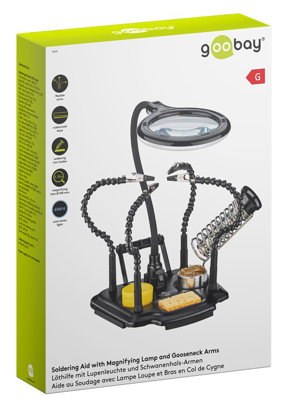 GOOBAY βάση στήριξης πλακέτας 76558 με μεγεθυντικό φακό & θέση για κολλητήρι, 4x βραχίονες, μαύρη