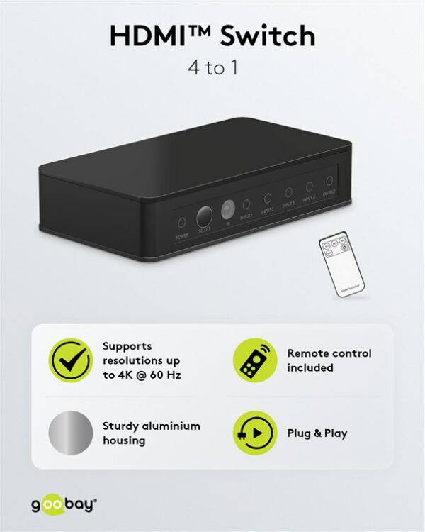 GOOBAY HDMI switch 58489 με τηλεχειριστήριο, 4 σε 1, 4K/60Hz, μαύρο