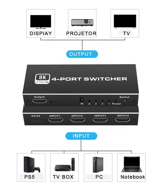 -συνδέει 4x συσκευές σε 1x οθόνες μέσω HDMI