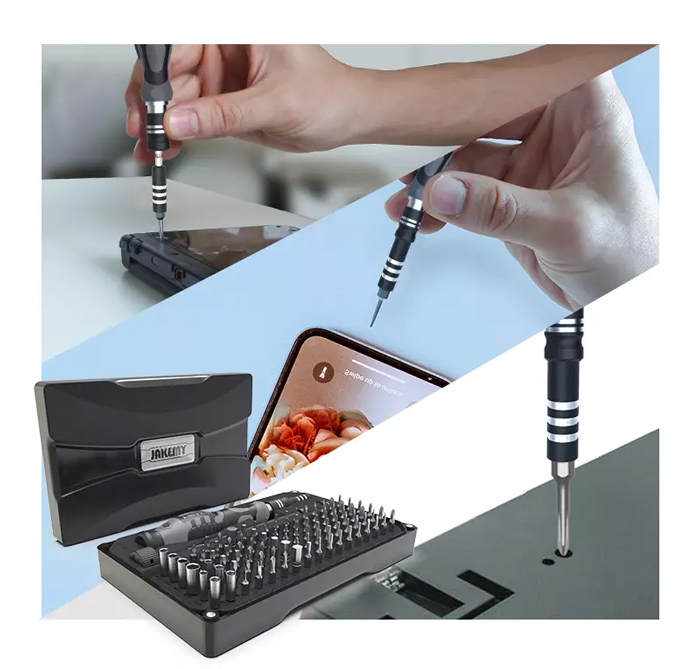 Σετ κατσαβιδιών της Jakemy το οποίο αποτελείται από κατσαβίδι, προέκταση, μαγνητιστή, τσιμπίδα και 30 διαφορετικές μύτες κατσαβιδιού.