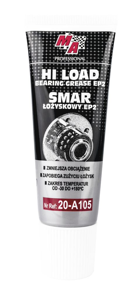 Γράσο υψηλού φορτίου της MA Professional, ιδανικό για επαγγελματική χρήση. ΕΞασφαλίζει εξαιρετικές ιδιότητες λίπανσης. Μειώνει αποτελεσματικά την αντίσταση κύλισης και τη φθορά των ρουλεμάν. Ανθεκτικό σε υψηλές θερμοκρασίες που κυμαίνονται από -30 °C έως 180 °C. Πολύ υψηλή πρόσφυση στην επιφάνεια και πολύ καλή αντοχή στην πλύση με νερό.