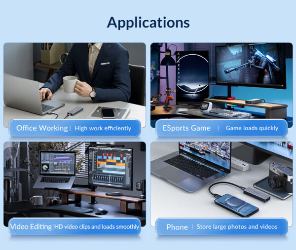 Compatible: M.2 NGFF SATA 2230, 2242, 2260, 2280 four different specifications of SSD