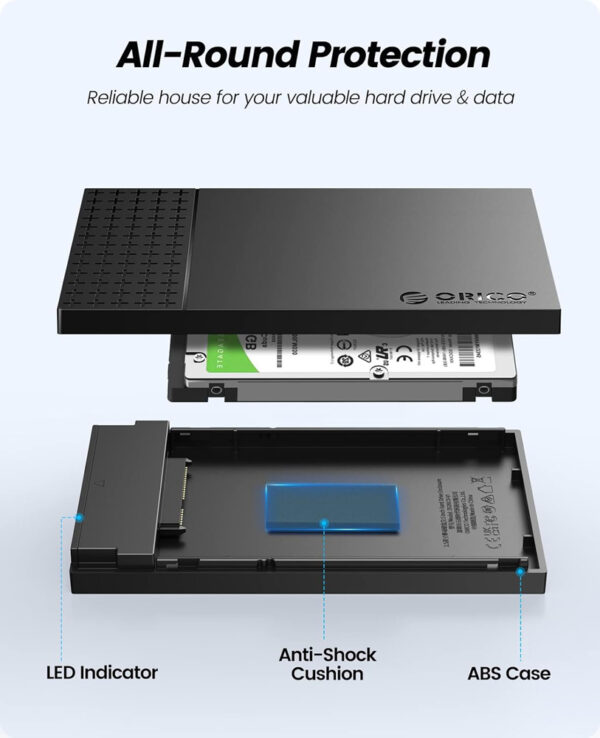 Η θήκη της ORICO επιτρέπει την σύνδεση ενός 2.5" SATA HDD ή SSD με έναν επιτραπέζιο ή φορητό υπολογιστή μέσω θύρας USB.