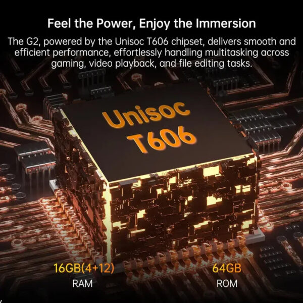 Εξοπλίζεται με μεγάλη οθόνη 6", οκταπύρηνο επεξεργαστή, 4GB (+12GB virtual) μνήμη RAM και 64GB αποθηκευτικό χώρο, με δυνατότητα επέκτασης έως 1TB με κάρτα μνήμης micro SD (δεν συμπεριλαμβάνεται).