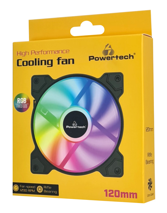 Ο ανεμιστήρας της Powertech προσφέρει υψηλής απόδοσης ψύξη και αθόρυβη λειτουργία. Εξοπλίζεται με κομψό fixed RGB LED φωτισμό που προσδίδει μαγευτική εμφάνιση και αισθητική στο desktop σας.