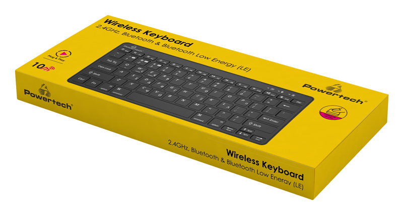 POWERTECH ασύρματο πληκτρολόγιο PT-1153, 2.4GHz & Bluetooth, μαύρο