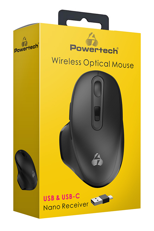 POWERTECH ασύρματο ποντίκι PT-1152, USB & USB-C δέκτη, 1600DPI, μαύρο