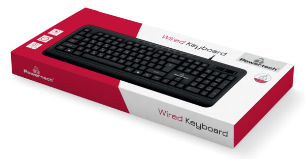 Ενσύρματο πληκτρολόγιο της Powertech με εργονομικά πλήκτρα για άνετη πληκτρολόγηση.
