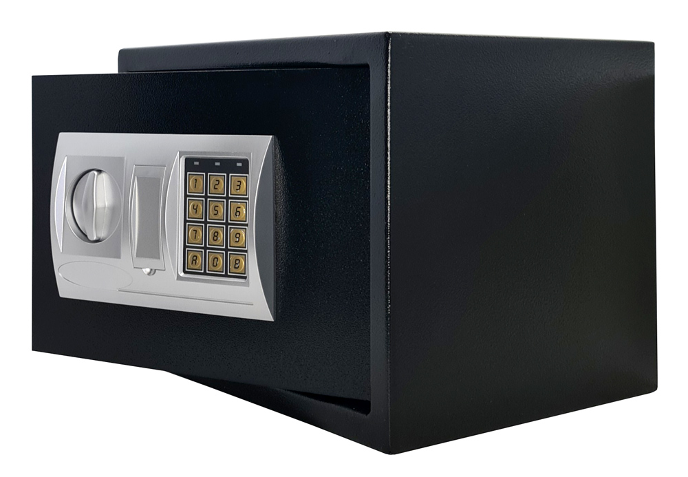 Χρηματοκιβώτιο της Powertech με δύο ενισχυμένους πύρους κλειδώματος, κατασκευασμένο από ατσάλι. Διαθέτει προγραμματιζόμενη ψηφιακή κλειδαριά, 3-8 ψηφίων, που σας επιτρέπει να επιλέγετε τον συνδυασμό που επιθυμείτε και κλειδαριά ασφαλείας με κλειδί που ανοίγει το χρηματοκιβώτιο σε περίπτωση ανάγκης.