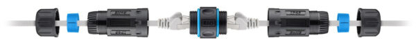 Αδιάβροχος σύνδεσμος καλωδίων δικτύου, ιδανικός για συνδέσεις δικτύου σε εξωτερικούς χώρους. Διαθέτει αδιαβροχοποίηση επιπέδου IP68, προστατεύοντας την συνδεσμολογία από σκόνη και νερό.