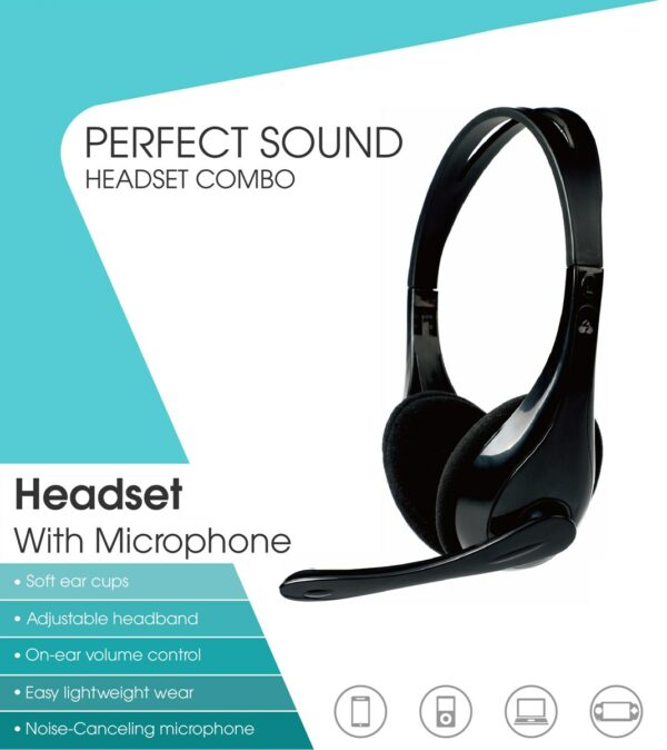 POWERTECH Headphones με μικρόφωνο PT-734 105dB, 40mm, 3.5mm, 1.8m, μαύρο