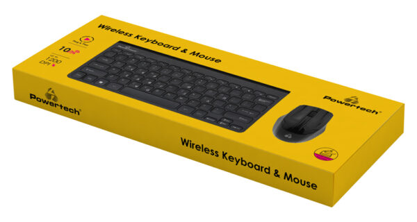 Set περιφερειακών για PC από την Powertech που αποτελείται από ασύρματο πληκτρολόγιο και ασύρματο οπτικό ποντίκι.