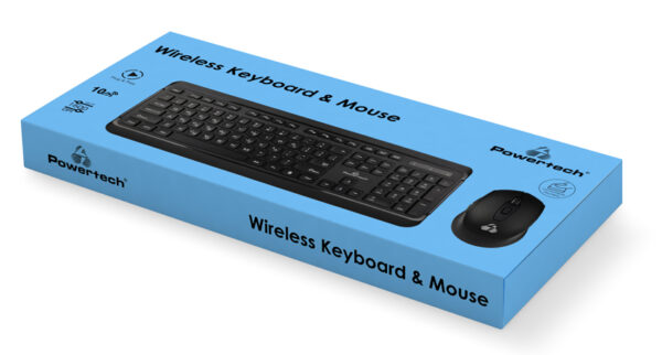 Set περιφερειακών για PC από την Powertech που αποτελείται από ασύρματο πληκτρολόγιο και ασύρματο οπτικό ποντίκι.
