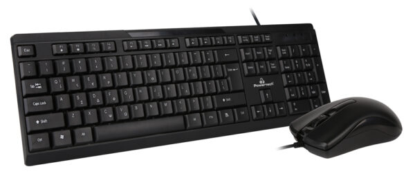 Set περιφερειακών για PC από την Powertech που αποτελείται από ενσύρματο πληκτρολόγιο και ενσύρματο οπτικό ποντίκι.